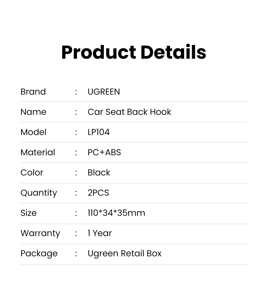 Specifications of UGREEN 2Pcs/set Car Back Seat Headrest Hanger Holder Hooks (Black)-Intl